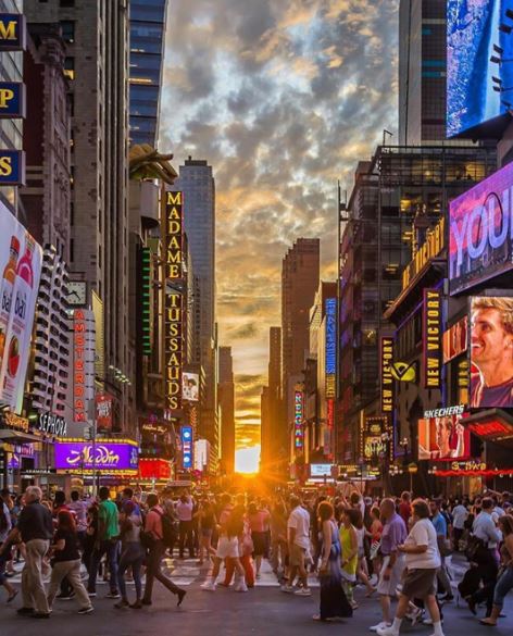由於紐約曼哈頓高樓大廈林立,街道是東西南北呈棋盤布局,所以平常要從街道上看到日落美景比較困難,但每年都有2個時段,曼哈頓懸日出現的時候,太陽剛好就從馬路中間落下,貫穿整座城市所有東西向的街道,夕陽落下的過程從頭到尾都不會被任何高樓或建築所阻擋,十分壯觀!