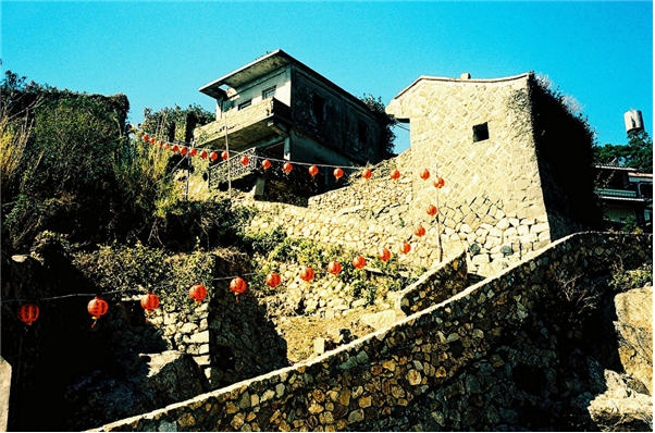 位 在馬祖北竿的芹壁村有著「馬祖地中海」的美稱,芹壁也是馬祖閩東建築最具代表性的聚落,保存大量早期海盜時代的原始石屋,建物都以石材堆砌而成,依山勢呈 階梯狀排列,層層相疊,錯落有致。從屋外就能看出一戶人家的家境,越是富裕石頭堆疊的越整齊,呈現人字或是丁字,也有「人丁興旺」的意思,有趣的是由高處 眺望石屋屋頂,可以看見屋瓦上再跌了一塊塊的石頭,是為抵禦強風防止海風將屋頂吹起的「壓瓦石」,眼尖的旅客仔細尋找還能看見有些房屋過去曾被鑲上反共標 語的石凋,突兀卻很有意思。